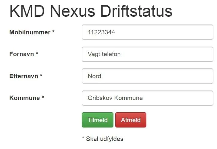 Tilmelding til SMS Service: KMD Nexus Drift meddelelser